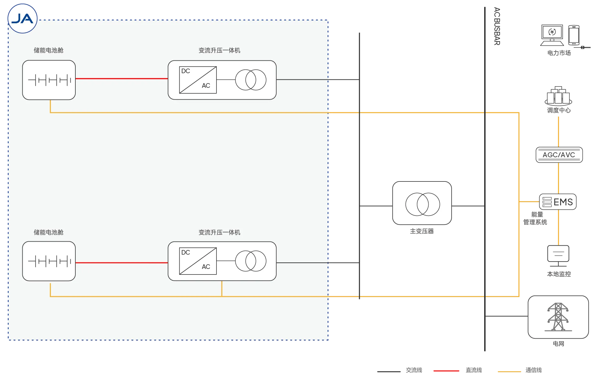 具备一次调频、AGC/AVC能力,可以快速响应电网指令。