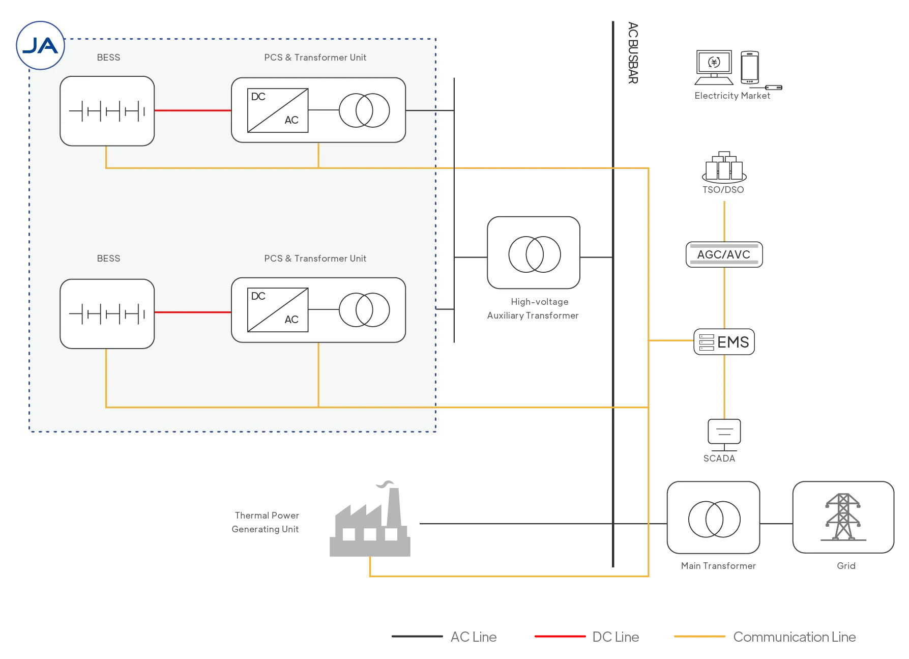 Co-optimized control of BESS and thermal power units to enhance grid ancillary services capability.