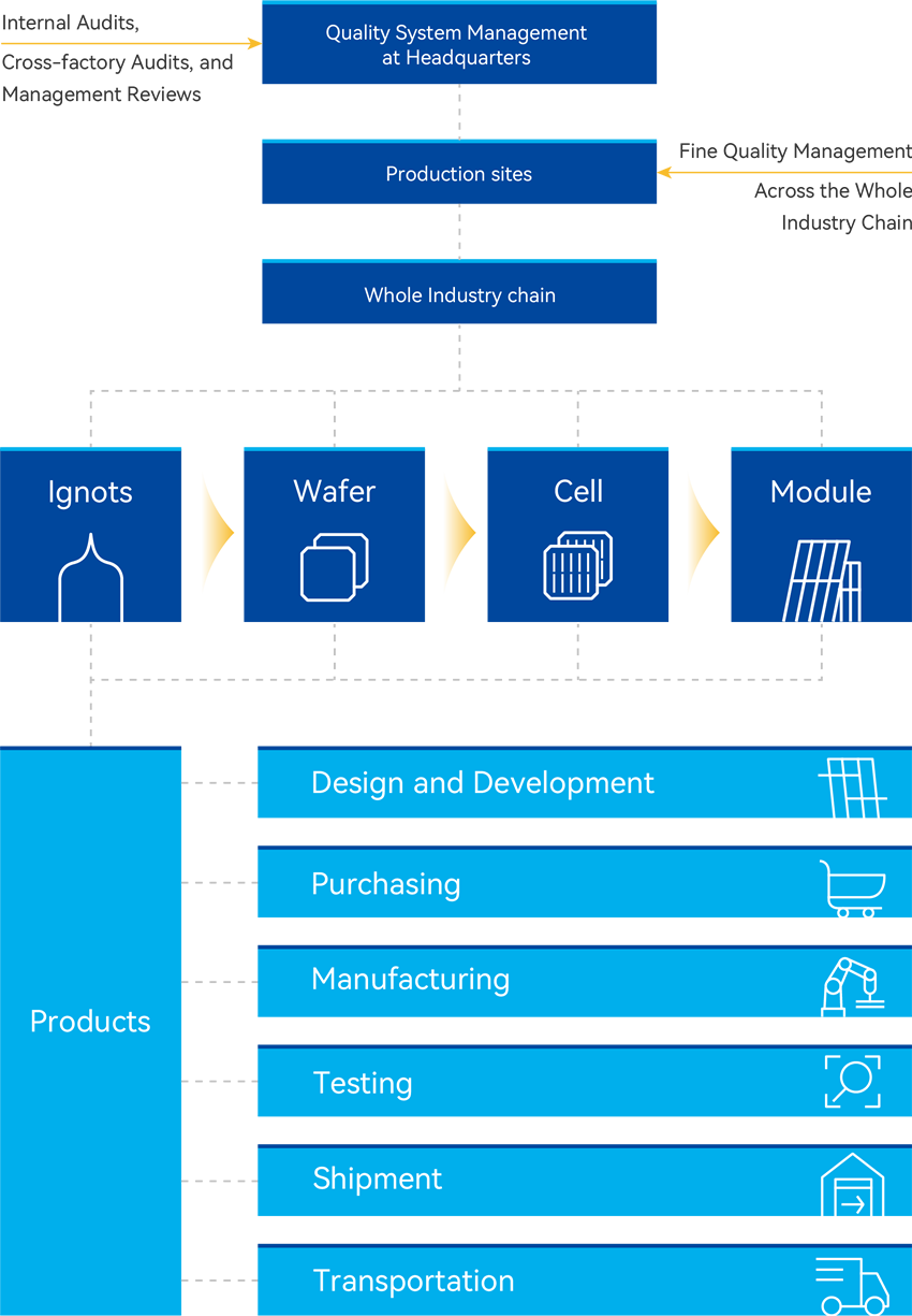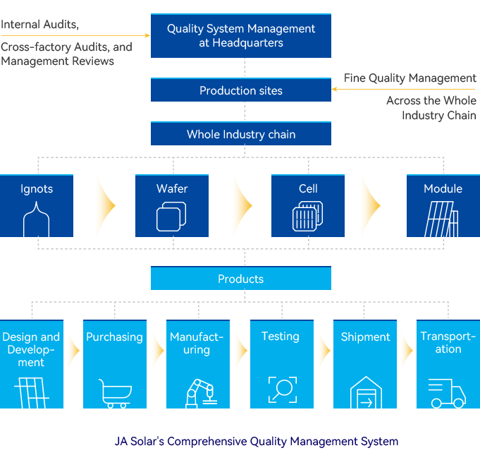 JA Solar comprehensively analyzes the environmental impact of product design, material selection, manufacturing, packaging, transportation, usage, and recycling throughout the entire lifecycle, and adopts various optimization approaches at different stages, setting specific indicators and goals for different products, and establishing a complete circular economy system.