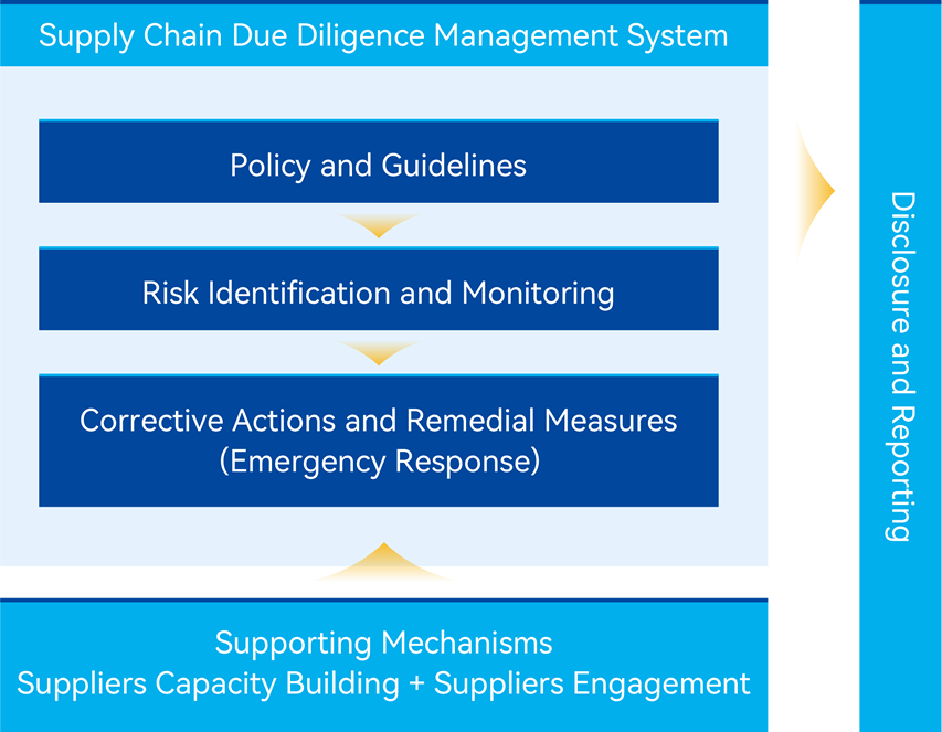 According to requirements of UN Guiding Principles on Business and Human Rights (UNGP), the European Corporate Sustainability Due Diligence Directive (CSDDD), and the Organization for Economic Cooperation and Development (OECD), JA Solar's supply chain due diligence management system includes continuous improvement of policies and guidelines, risk identification and monitoring, and implementation of corrective and remedial measures, supported by supplier capacity building and engagement, and closed loop management through information disclosure and reporting.